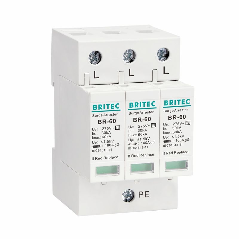 BRITEC 1P वर्ग II SPD 60kA T2 ओवरज अरेस्टर एसी ओवरज लाइटनिंग प्रोटेक्टर ओवरज सुरक्षा उपकरण