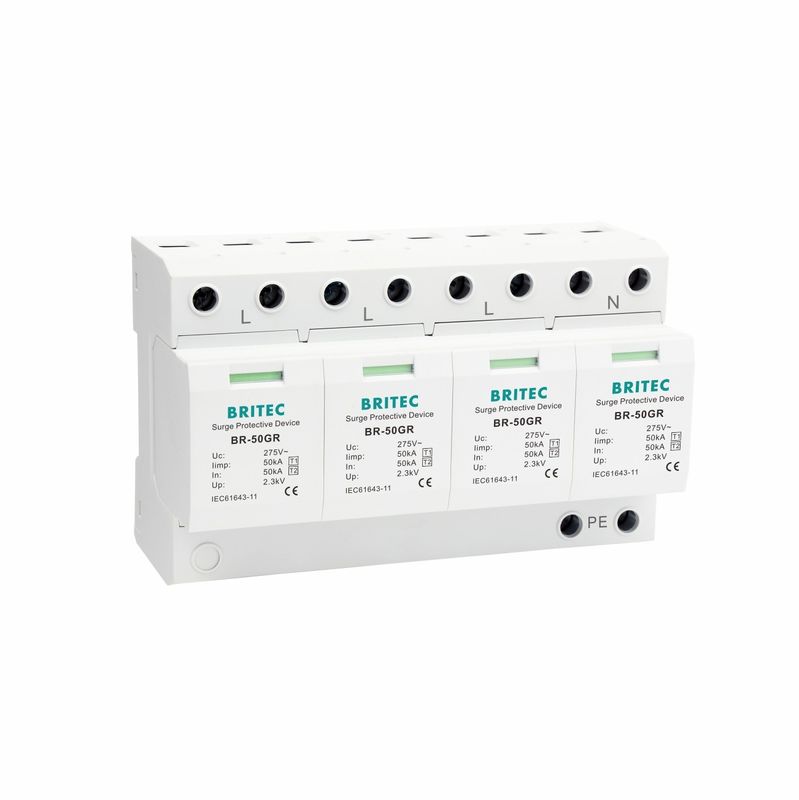 50kA तीन चरण टाइप 1 सर्ज प्रोटेक्शन डिवाइस TUV प्रमाणित BR-50GR 3+1